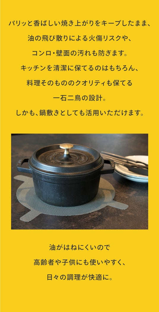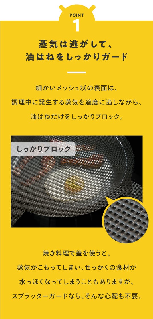 ヨーロッパ発【油はねに悩まない】焼きも揚げも、毎日の料理の負担を軽減!新技術の油はねガードが日本初上陸!!