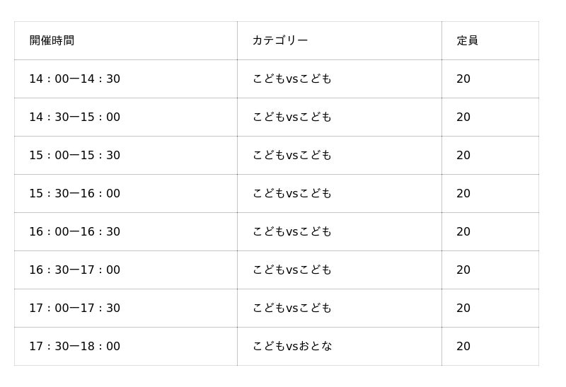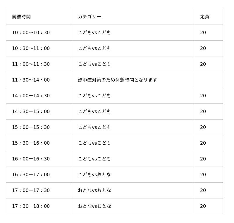 ※熱中症対策のために、11:30~14:00は休憩時間になります。