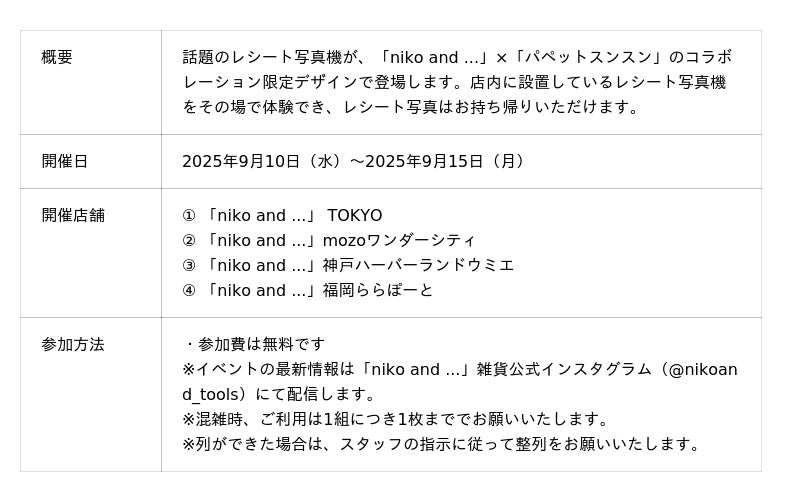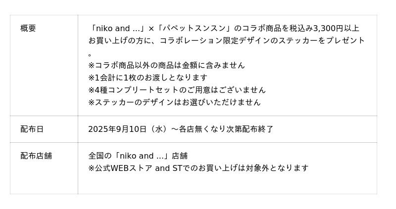 ■「niko and ...」×「パペットスンスン」コラボレーション概要