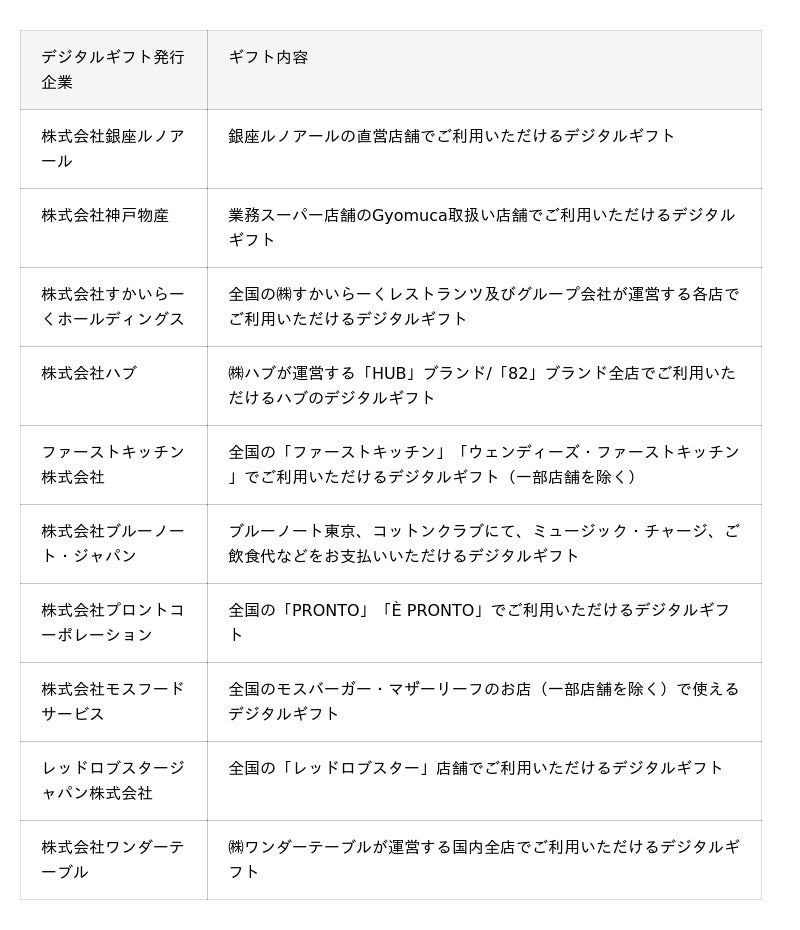 バリューデザイン社が提供する「独自Pay」サービスをご導入いただいた顧客が発行するデジタルギフトの中から、1 種類を選択いただけます。