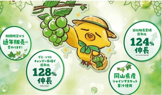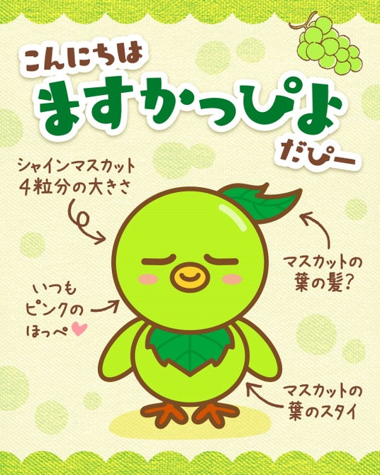 三菱食品株式会社(東京都文京区)のオリジナルブランドである『かむかむ』より、かむかむシャインマスカットが年間販売商品になったことを記念し、新キャラクターが誕生しました。名前は『かむかむ公式インスタグラム』などでの投票を経て、「ますかっぴよ」になりました。