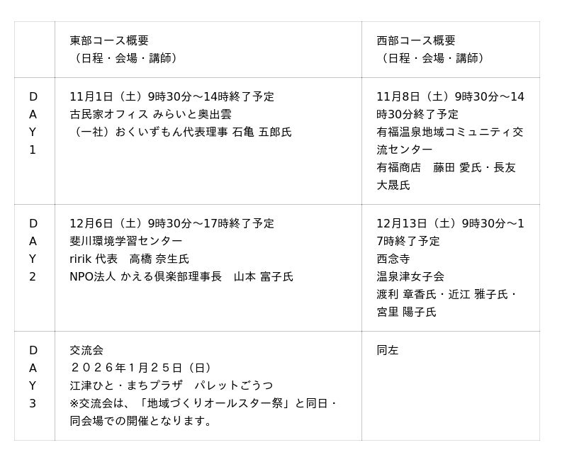講座は、東部コース・西部コース、それぞれ全3回となり、講師や講座内容もそれぞれ異なります。