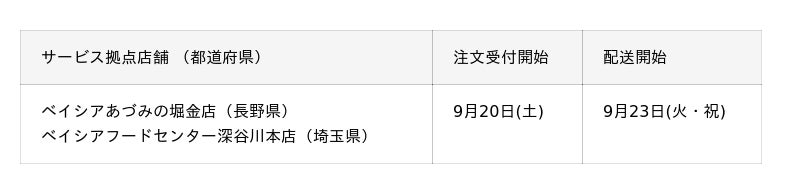 株式会社ベイシア(本社:群馬県前橋市、代表取締役社長:相木孝仁)は、楽天グループ株式会社(以下「楽天」)が提供するネットスーパーのプラットフォーム「楽天全国スーパー」内に出店する「ベイシアネットスーパー」において、ベイシアあづみの堀金店・ベイシアフードセンター深谷川本店からの配送を2025年9月23日(火・祝)より開始いたします。