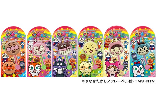 ・アンパンマンのキャラクターの顔の形をした棒付きチョコレートに、人気のコキンちゃんが仲間入り