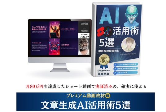 9.「月80万円を達成したショート動画で実証済みの、確実に使える文章生成AI活用術5選」動画教材30分、スライド100枚