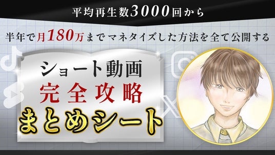 8.平均再生数3000回から、半年で月180万までマネタイズした方法を全て公開する「ショート動画完全攻略まとめシート」