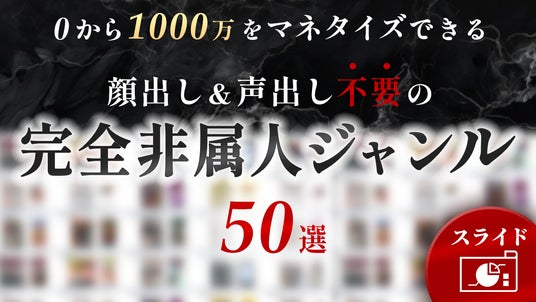 6.0から1000万をマネタイズできる顔出し&声出し不要の完全非属人ジャンル50選スライド