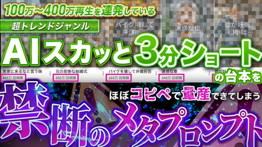 3.100万~400万再生を連発している超トレンドジャンル、『AIスカッと3分ショート』の台本を、ほぼコピペで量産できてしまう"禁断のメタプロンプト"