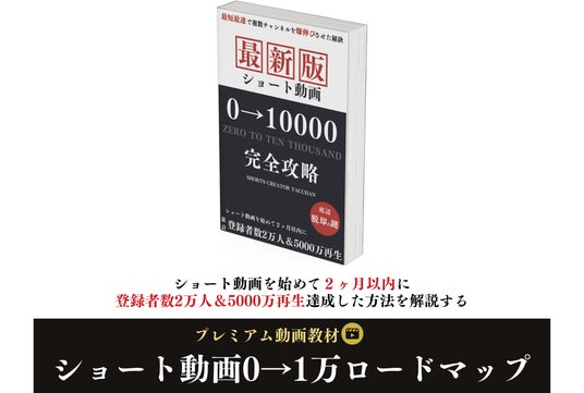10.ショート動画を始めて2ヶ月以内に、登録者数2万人&5000万再生達成した方法を解説する「ショート動画0→1万ロードマップ」動画教材1時間、スライド325枚