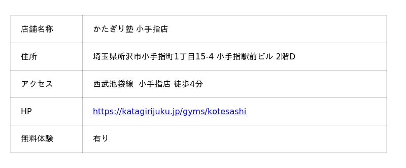 ▶︎https://katagirijuku.jp/gyms/kotesashi