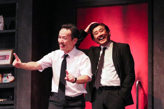 井田譲治(元マネージャー)を演じる水谷あつしは「私は今から22年前の山田邦子座長の舞台にも出演しましたが、本当に邦子さんが大好きで。 22年ぶりなんて思えない、すべてが昔とかわらないエネルギー、エンジン、スピード感が気持ちよくて。私は今年60になりましたが、まだまだ若手の気持ちにさせていただきました」と山田邦子が発する物凄いパワーに再び魅了されたようだった。