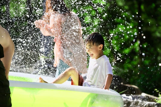 自然に囲まれた開放的な空間で、思い切り走り回ってびしょ濡れになっても大丈夫!