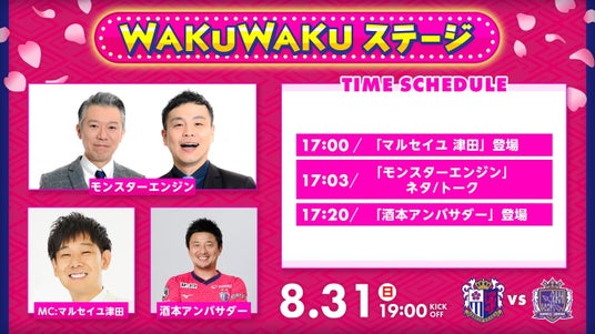 【セレッソ大阪】8/31(日)広島戦 WAKUWAKUステージ開催!モンスターエンジン、マルセイユ 津田さんが登場!