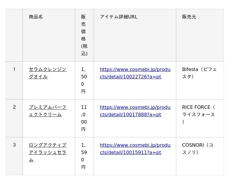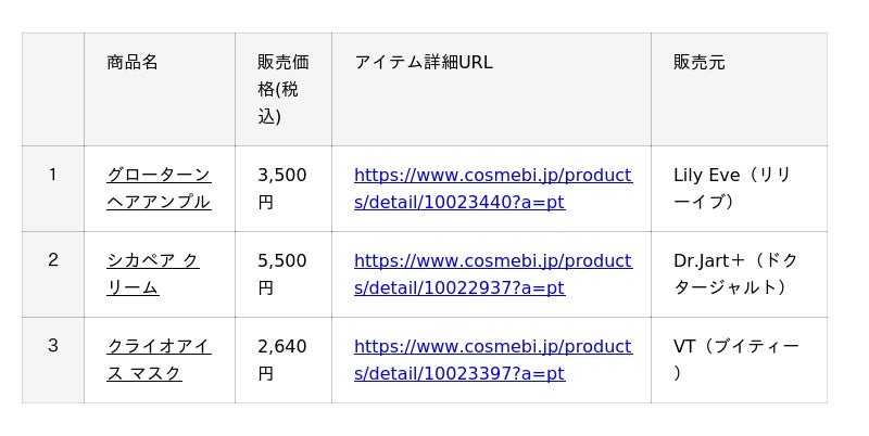 ・公式サイト :https://www.cosmebi.jp/?a=pt