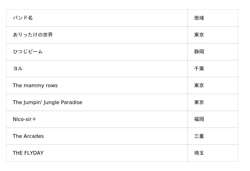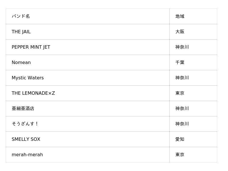 選考の結果、以下の17組のアーティストが一次審査を通過し、9月13日(土曜日)・14日(日曜日)に市内ライブハウスで開催する最終ライブ審査へ進出いたします。