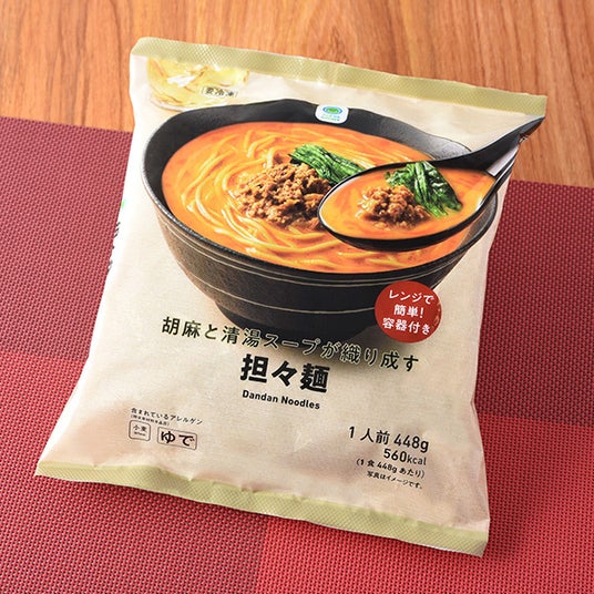 【内容】レンジで温めて冷たく仕上がる冷やし担々麺です。ごまの風味に、花椒の香りと痺れがきいたピリ辛な味わいです。