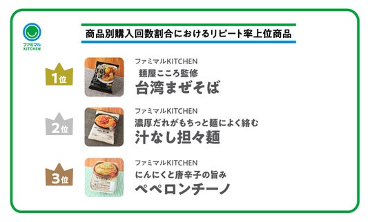 そして2位、3位には、「麺屋こころ監修台湾まぜそば」、「濃厚だれがもちっと麺によく絡む汁なし担々麺」と続きました。これらは1年間で200万食以上を売り上げた人気商品です。4位以下の商品は、トップ3とは大きな差があり、辛旨系の中でも人気商品が固定化している傾向が伺えます。
