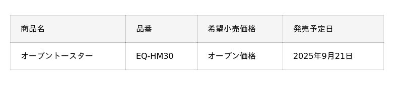 「石窯」をヒントに、熱を逃がさずスピーディーに焼き上げる オーブントースター(EQ-HM30) 新発売
