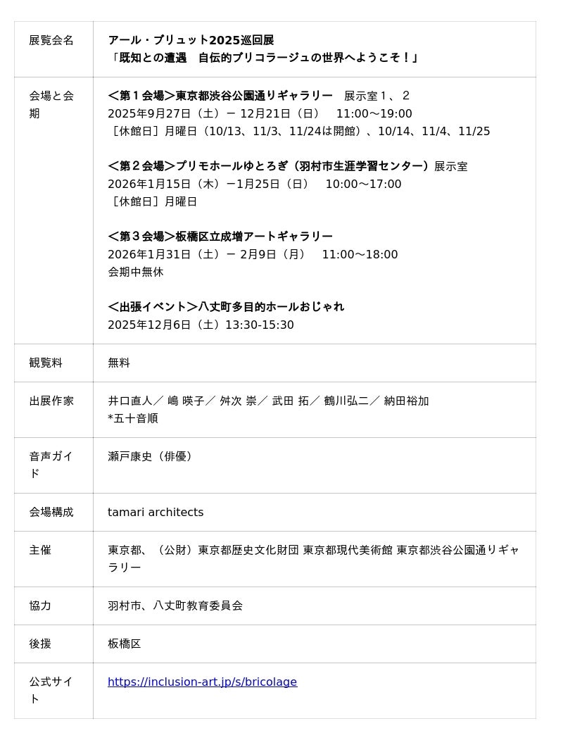 アール・ブリュット*2025巡回展「既知との遭遇 自伝的ブリコラージュの世界へようこそ!」を都内3カ所で開催いたします。