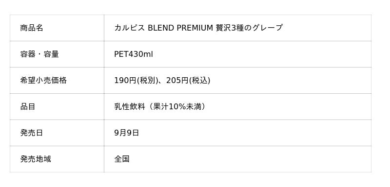 『カルピス BLEND PREMIUM 贅沢3種のグレープ』9月9日発売