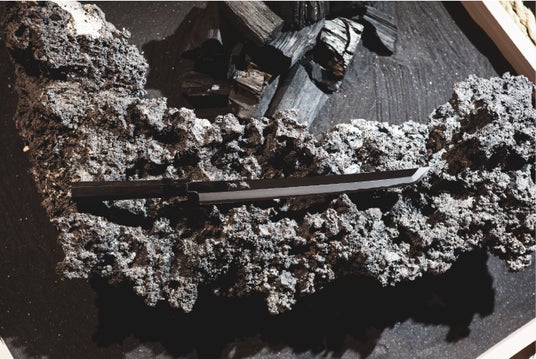 会場では、和鋼ができるまでの工程や、「たたら製鉄」「堺打刃物」の伝統技術と魅力をご紹介します。日本刀の製作には欠かせない玉鋼と玉鋼を用いた柳刃包丁の展示もご用意しています。