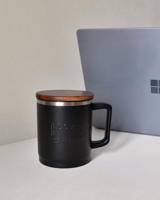 目盛り付きでインスタントコーヒーにも便利♪木製フタのステンレスマグカップが登場です!