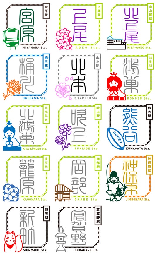 宮原駅、上尾駅、北上尾駅、桶川駅、北本駅、鴻巣駅、北鴻巣駅、吹上駅、熊谷駅、籠原駅、