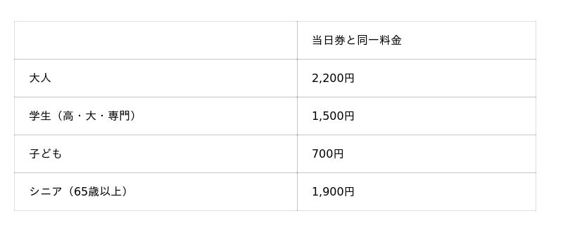 利用方法:会場券売機(現金のみ)にて、当日割引チケットをご購入ください
