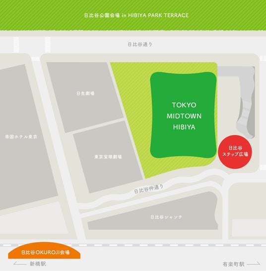 【場所】 東京ミッドタウン日比谷 日比谷ステップ広場、日比谷公園、日比谷OKUROJI