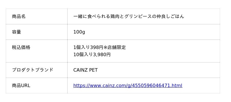 カインズはこの商品を通じて、愛犬と「一緒に食べる」喜びと安心をより多くの飼い主に感じていただくとともに、食事の準備にかかる手間が減ることで生まれた時間を通して家族の絆を深めていただき、愛犬とのくらしがより豊かに楽しいものになることを願っています。