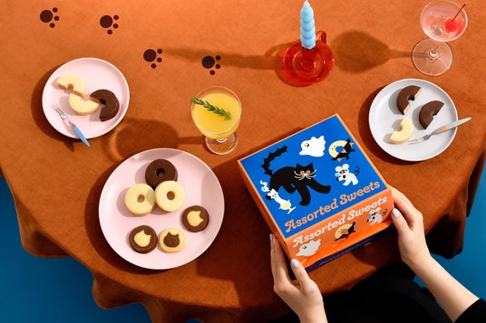 ミニチョコバウムとねこ柄ビスケットが、たっぷり合計20個入り。キャラクターたちのように、みんなでわいわい囲んで楽しめるアソートセットです。