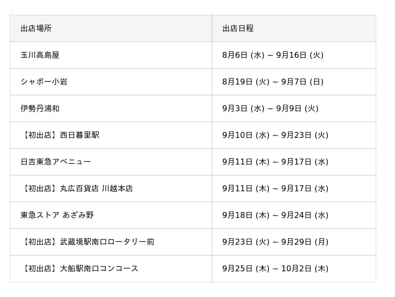※出店日程は予告なく変更になる場合がございます。予めご了承ください。