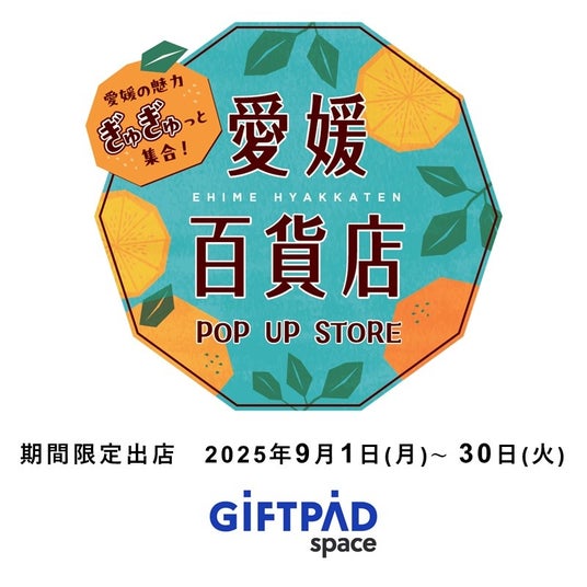 株式会社ギフトパッド(本社:大阪市、代表取締役:園田 幸央、以下、ギフトパッド)は、運営するアンテナショップ『Giftpad space~日本の魅力をつむぐ~』(KITTE大阪2F)にて、2025年9月1日(月)から30日(火)までの1ヶ月間、愛媛の「選りすぐり」を集めた"愛媛百貨店POP UP STORE"を開催します。
