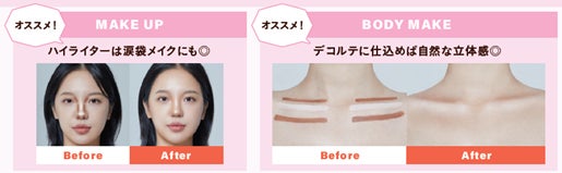 陰影をつけたい部分に仕込むシェーディング、光を集めたい部分に仕込むハイライターを活用すれば、1 本でなりたい自分に近づくメイクが可能です。【シェーディング】