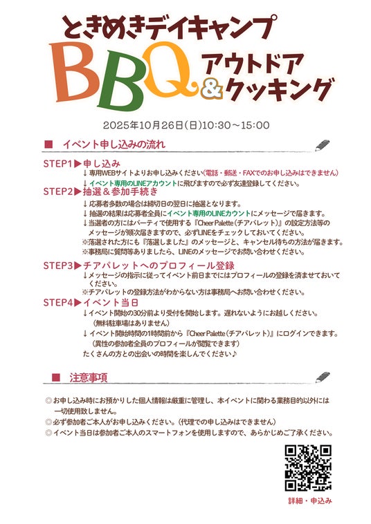 【岡山市出会いのひろば】参加者募集中!"ときめきデイキャンプ(ハート) BBQ&アウトドアクッキング" 10月26日(日)開催