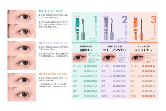 理想の仕上がりに合わせて選べる3種類のマスカラを展開。