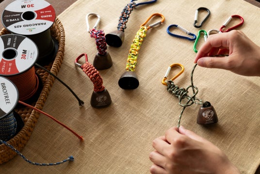 尾瀬の散策にあると安心な「熊鈴」を、パラコード編みで作ることができます。パラコードとは、パラシュートコードの略称で、軽くて丈夫なナイロン製のロープです。緊急時には物を結んだり、けがの応急処置に使ったりと山の中で役立ちます。好きな色のパラコードを選び、自分だけの熊鈴づくりに挑戦。完成した熊鈴は、翌日の尾瀬ハイクですぐに使えます。