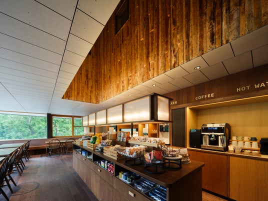LUCY尾瀬鳩待には、カフェとショップ機能を備えた「はとまちベース Cafe & Shop」が隣接しており、ホテル到着後や尾瀬ハイク前後のカフェタイムやランチに気軽に立ち寄れます。