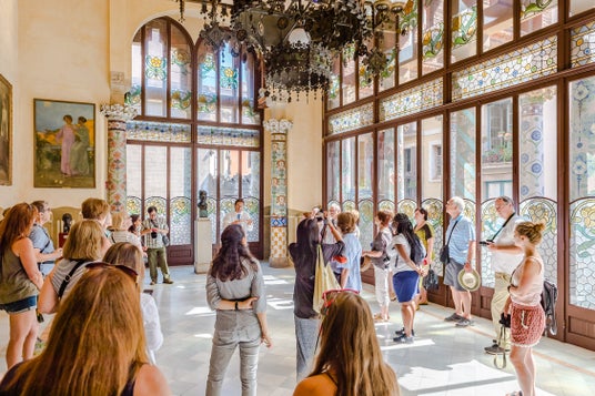 スペイン・バルセロナの中心に位置するカタルーニャ音楽堂は、建築家リュイス・ドメネク・イ・ムンタネーの代表作。色彩豊かなモザイク装飾、天井から差し込むステンドグラスの自然光、そして豊かな音響を誇るコンサートホールが織りなす空間は、「世界で最も美しい音楽ホール」とも称されています。