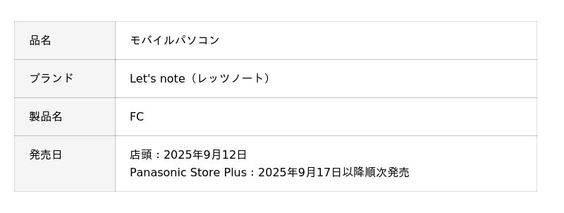 パナソニック コネクト株式会社(本社:東京都中央区、代表取締役 執行役員 プレジデント・CEO:樋口 泰行)は、これまで法人向けにのみ販売を予定していたモバイルパソコン「レッツノート」の14.0型大画面モデル「FC」を、個人のお客様向けにも販売します。店頭は2025年9月12日、パナソニックのショッピングサイト「Panasonic Store Plus(パナソニックストアプラス)」は2025年9月17日以降順次発売予定です。2025年6月に発売した12.4型「SC」への高い評価に加え、大画面モデルへの強いご要望にお応えし、多様化する個人のライフスタイルを豊かにし、創造性を加速させる本モデルを展開します。