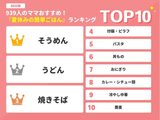 ママたちがおすすめする『夏休みの簡単おうちごはん』ランキング