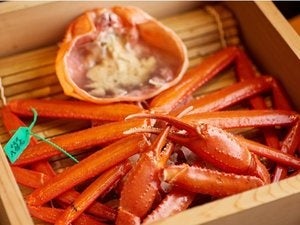 例年9月から翌年5月までが漁期ですが、特に9月~11月は"走り"の時期ならではの瑞々しい身質と濃厚な旨みを楽しめます。当館では、朝競りで仕入れた香住ガニをその日のうちにお客様へご提供。焼き・刺し・茹で、蒸しなど、多彩な調理法でお召し上がりいただけます。