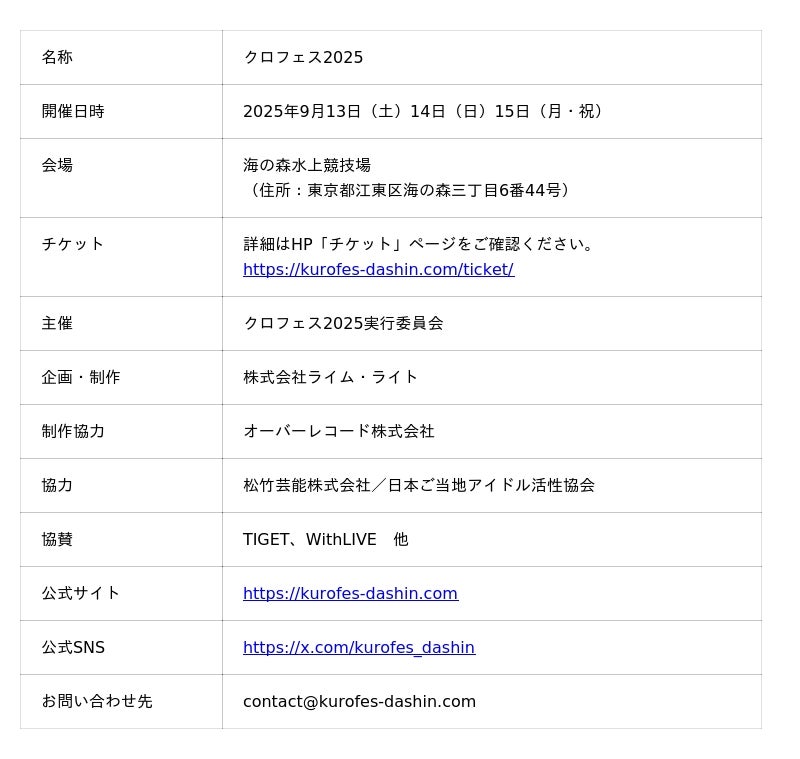 クロフェス2025開催概要