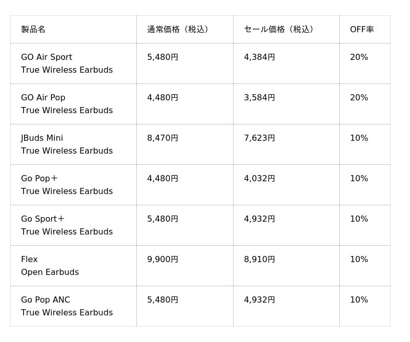 2024年度に100ドル以下のスポーツイヤホンと50ドル以下のワイヤレスイヤホンのカテゴリーで全米売上No.1(※1)を獲得した「JLab」の日本法人、JLab Japan株式会社(本社:東京都港区、代表取締役:横張 亮輔)は、2025年8月29日(金)9:00~2025年9月4日(木)23:59までAmazonで開催される「AmazonスマイルSALE」にて、話題の「イヤーカフ型ワイヤレスイヤホン」をはじめとした、ワイヤレスイヤホン・ヘッドホン等、注目の17製品を最大20%OFFで販売いたします。