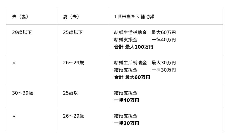 申請時において、以下の要件すべてを満たす世帯が対象となります。●令和7年1月1日から令和8年3月31日までに婚姻した夫婦