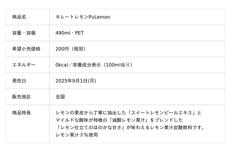 ~無糖なのにレモン仕立てのほのかな甘さ~「キレートレモンPuLemon」2025年9月1日(月)より全国で新発売
