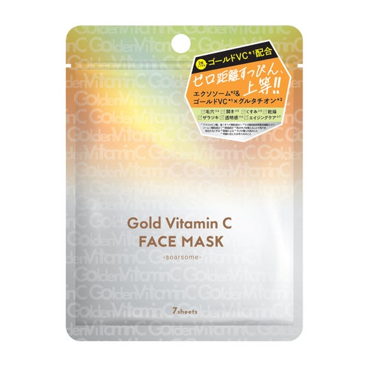 化粧品製造工場×原料メーカーの本気を出したスキンケア『soarsome(ソアソーム)』を代表するナノカプセル処方のエクソソーム*¹マスクに、"ゴールドVC*²"をプラスした新商品が登場!