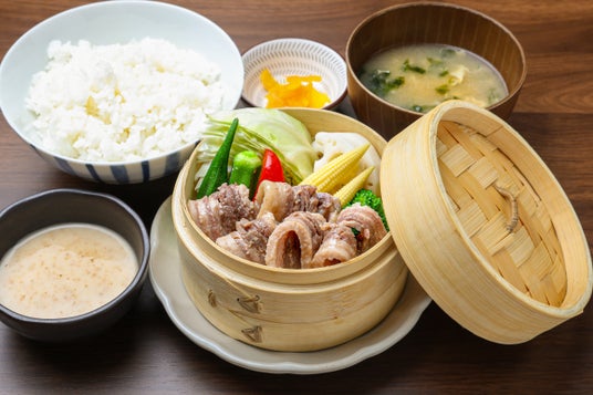 イノシシのロース肉をたっぷりの野菜とともに蒸し料理として提供します。レシピは「2024 年度第9回ジビエ料理コンテスト小・中・高校生部門」の農林水産大臣賞受賞メニューを『るるぶキッチン』がアレンジしました。イノシシ肉のロースはジューシーで、脂もさっぱりしています。白味噌とすだちを合わせた、爽やかな香りとコクのあるオリジナルソースに、たっぷり野菜と一緒にディップしてください。