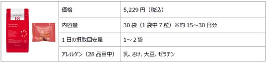 本製品は、「毎日を豊かに楽しく過ごしたい」 「大切な体のために必要な栄養素をバランスよく摂りたい」といった、アラフィフ世代の健やかさ、美しさを考えたサプリメントです。大豆イソフラボンやルテインなど、アラフィフ世代から積極的に摂りたい29種類の成分を7粒に凝縮。1回分をワンパックの個包装でまとめているので持ち運びにも便利で、必要な栄養が手軽に摂れます。