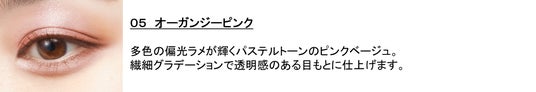 多色の偏光ラメを贅沢に使用配合したパステルトーンのピンクベージュグラデにより透明感がUP。
